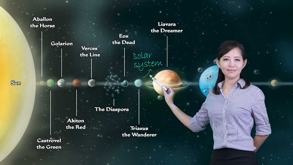 终效果类似老师在触摸屏上讲课,我们采用虚拟方式,摒除了触摸屏和人物亮度不一致,摒除了触摸屏色调发蓝,发黄等现象。